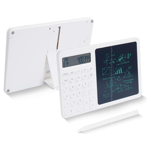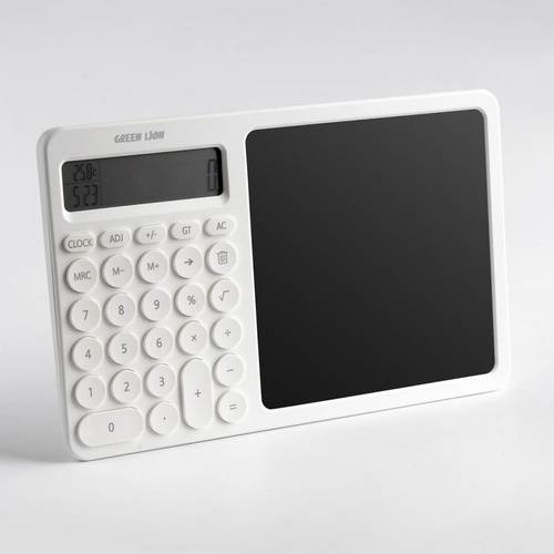 ماشین حساب Green Lion CalcWrite Pro GNCALCWPADWH ماشین حساب یکی از ابزارهای پرکاربرد در اغلب رشته های دانشگاهی که نیازمند محاسبات هستند، است. علاوه بر آن خیلی از مشاغل برای کار خود به یک ماشین حساب نیاز دارند. کمپانی گرین لاین ماشین حساب Green Lion CalcWrite Pro را با پد نوشتاری ترکیب کرده تا یک دانشجو یا فروشنده بدون نیاز به کاغذ از پس کارهای محاسباتی خود بر بیاید. ویژگی های ظاهری در نگاه اول وقتی به ماشین حساب Green Lion CalcWrite Pro نگاه می کنید، پد نوشتاری هوشمند در کنار ماشین حساب جلب توجه می کند. صفحه نمایش در نظر گرفته شده برای ماشین حساب گرین لاین از نوع دو خطی است تا فضای کافی برای نمایش همزمان ورودی و خروجی تا 8 رقم در اختیار کاربر قرار دهد. اندازه این ماشین حساب به صورتی بوده که به راحتی می توانید آن را با خود حمل کنید و در کیف خود قرار دهید. در قسمت پشتی ماشین حساب گرین لاین یک قسمت استند مانند وجود دارد که با باز کردن آن میتوانید ماشین حساب را در حالت ایستاده قرار دهید و به محاسبه بپردازید. همچنین این ماشین حساب در قسمت گوشه صفحه نمایش خود ساعت و دمای محیط را به شما نشان میدهد. مشخصات ماشین حساب گرین لاین با پد نوشتاری ماشین حساب Green Lion CalcWrite Pro دارای 4 عمل اصلی محاسبات در کنار کلید رادیکال و درصد میباشد که میتوانید بوسیله آن محاسبات خود را انجام دهید. همان طور که گفته شد در کنار قسمت ماشین حساب نیز یک پد نوشتاری وجود دارد که میتوانید از آن به جهت چک نویس یا صفحه یادداشت محاسبات استفاده کنید. مثلا میتوانید اعداد محاسبه شده توسط ماشین حساب را در آن قسمت یادداشت کنید. پد نوشتاری هوشمند با قلم شاید بتوان یکی از ویژگی های منحصر به فرد ماشین حساب Green Lion CalcWrite Pro داشتن پد نوشتاری دانست. این پد نوشتاری در هنگام محاسبات به کمک شما می آید تا بتوانید از آن به عنوان چک نویس استفاده کنید یا حین محاسبه یادداشت برداری کنید. این کار توسط قلم خود دستگاه انجام می شود و شما می توانید با لمس یک کلید صفحه را پاک کنید. این پد نوشتاری علاوه بر راحتی بیشتر، به شما در صرفه جویی مصرف کاغذ کمک می کند.